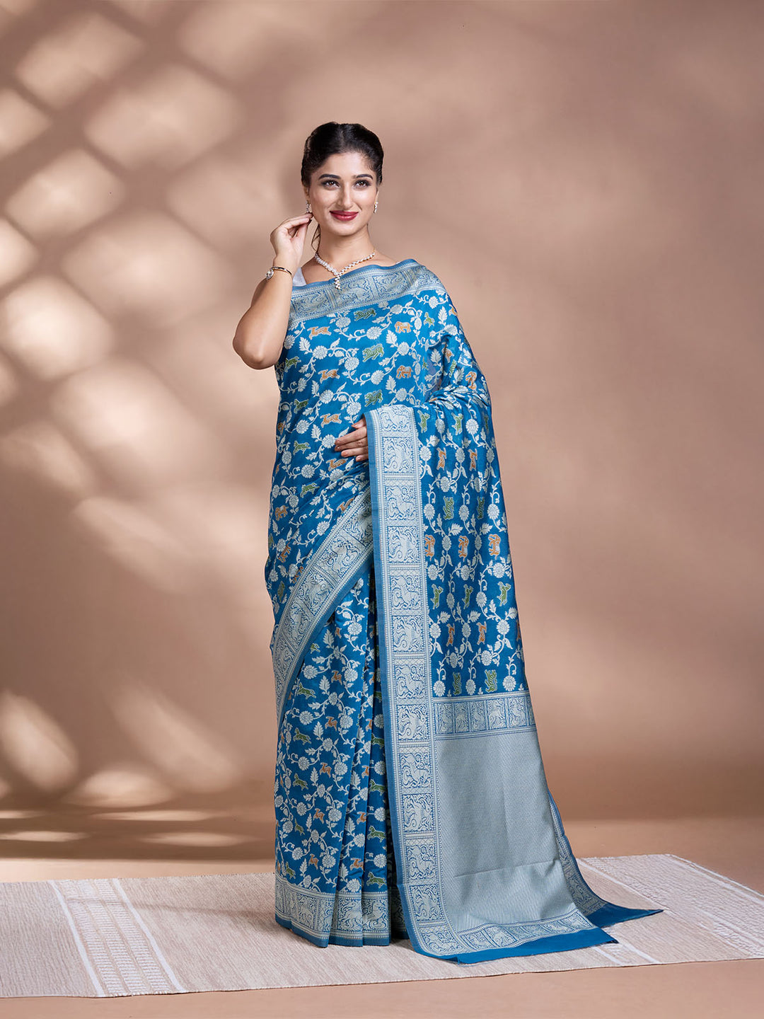 Firozi Tissue Zari Woven Saree