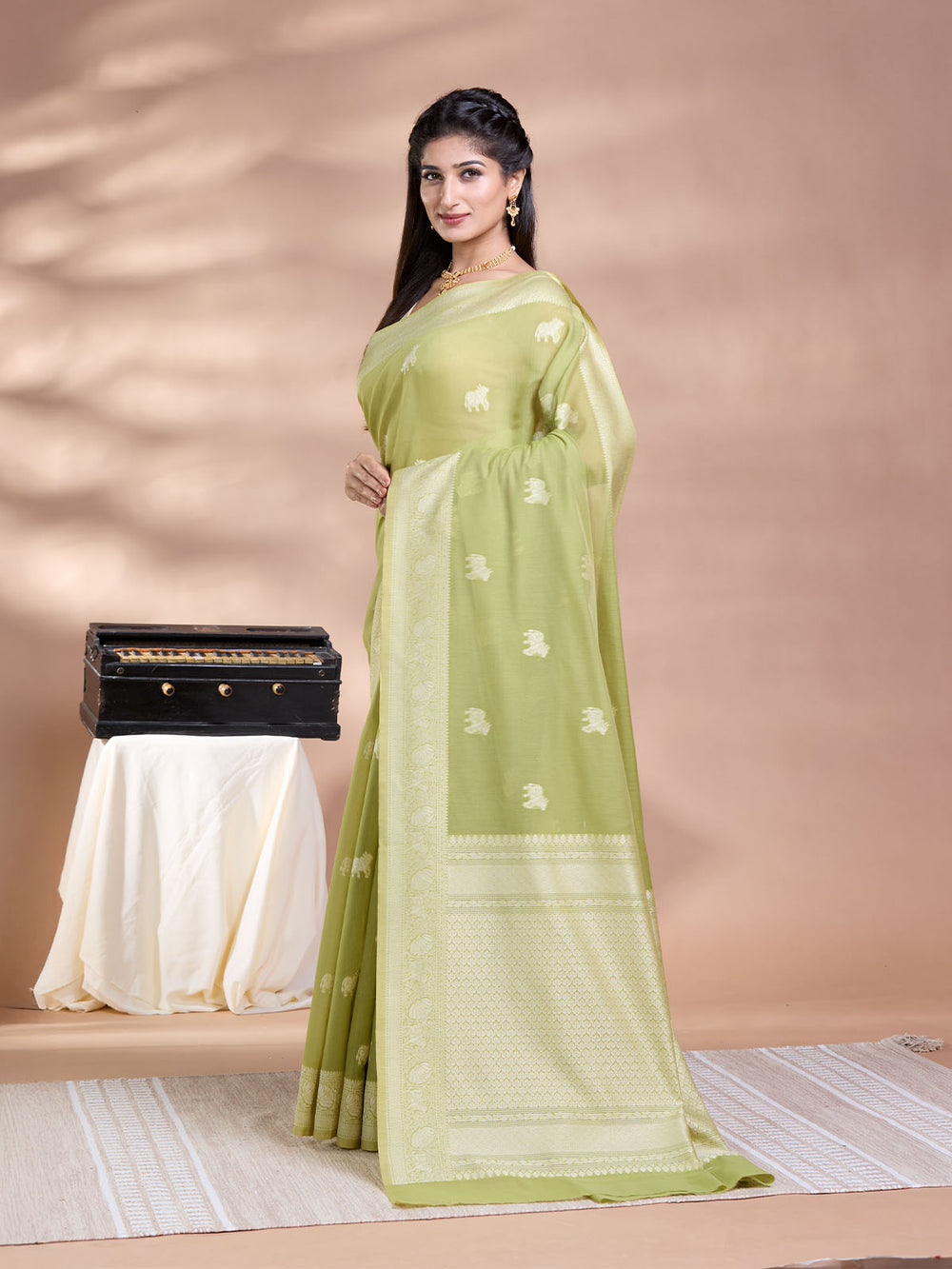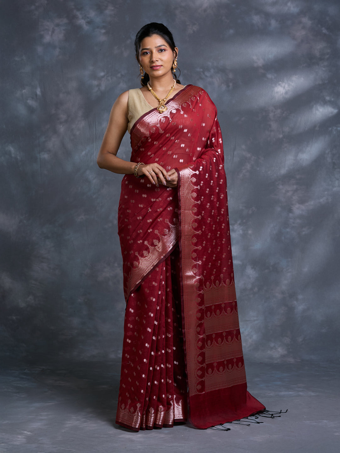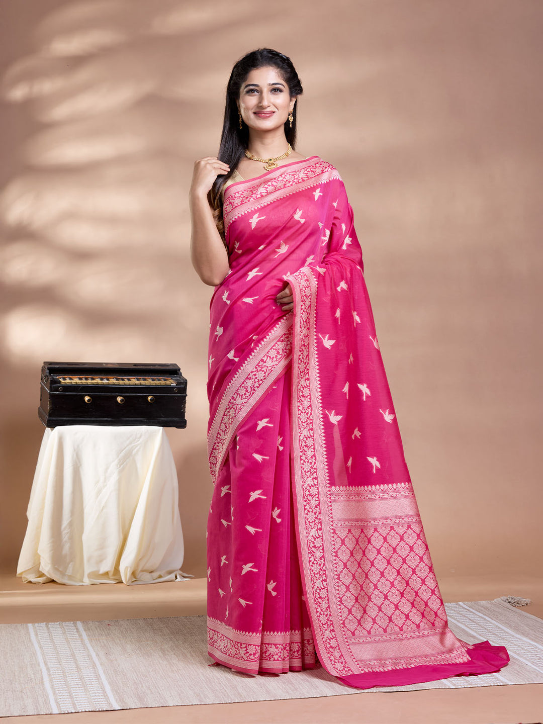 Rani Pink Resham Weave Mulmul Cotton Saree
