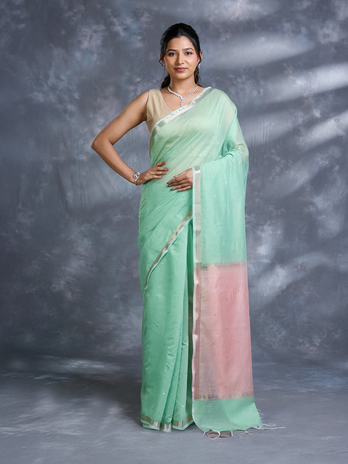 Ideal for festive gatherings and cultural celebrations, this saree brings a graceful touch to any occasion. The subtle shimmer of the zari work adds a refined glow while maintaining a balanced and sophisticated look. Pair it with traditional jewellery and a simple blouse to complete a look that is both elegant and effortlessly stylish.