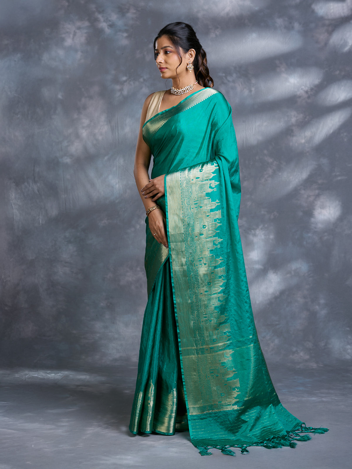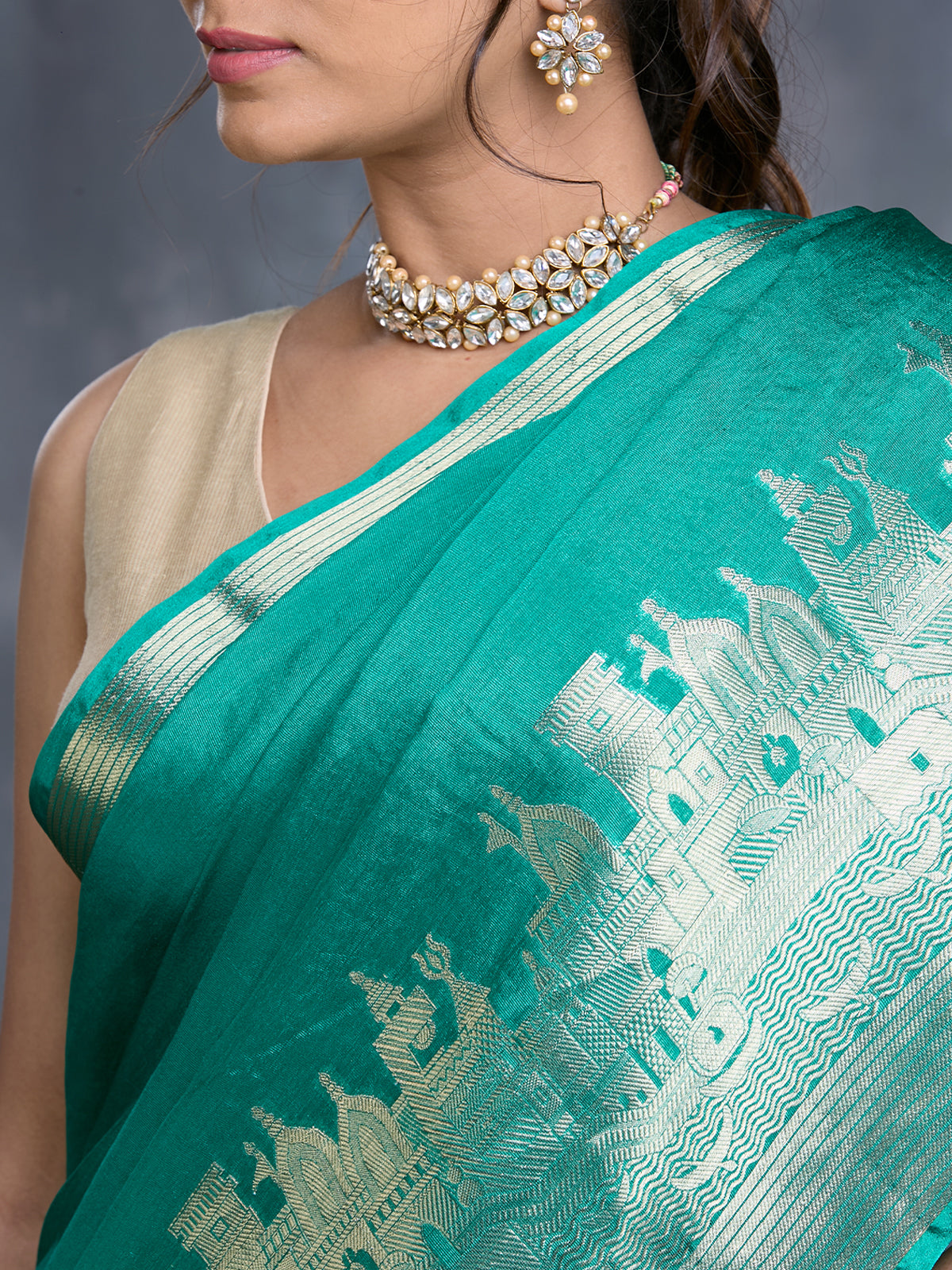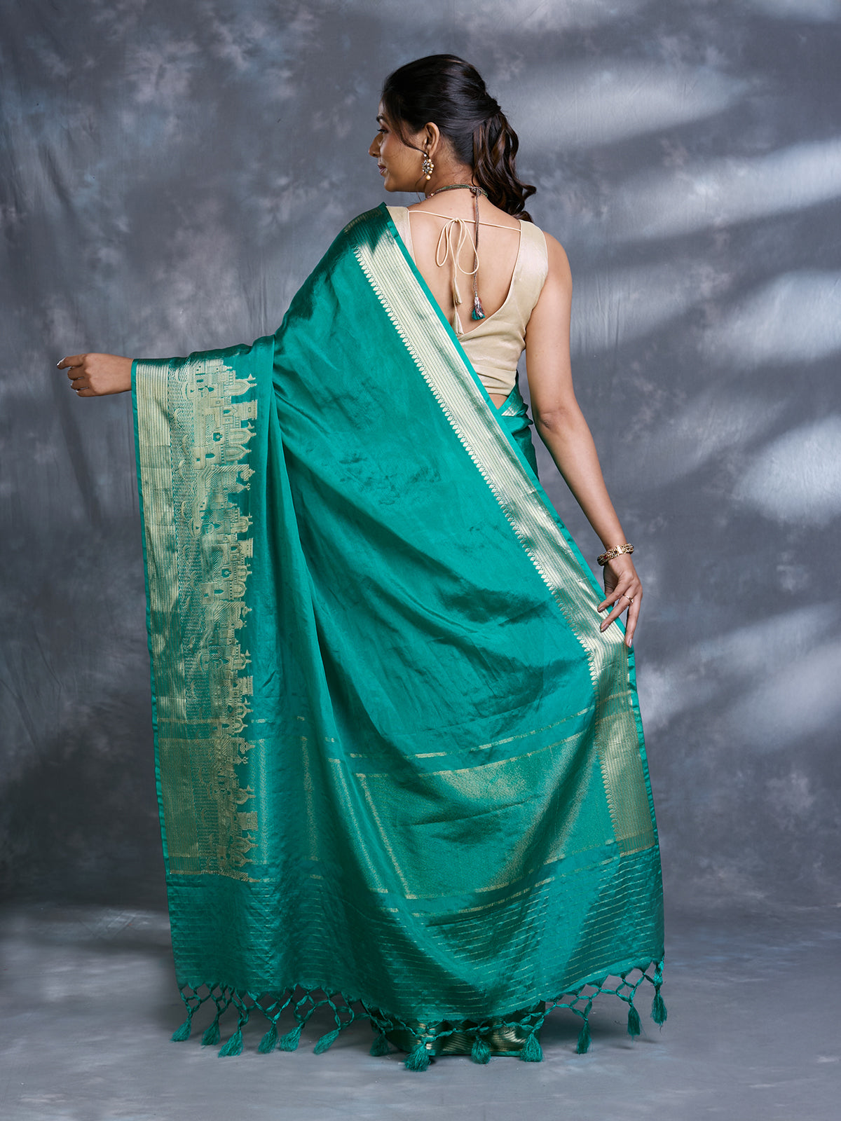 Green Dupion Silk Woven Saree