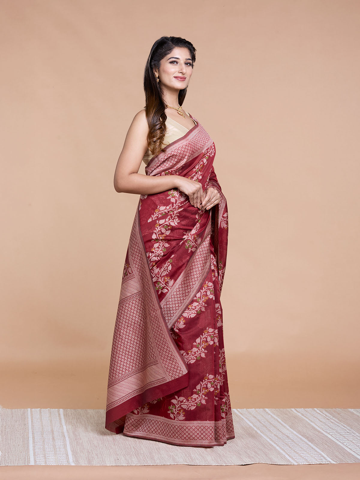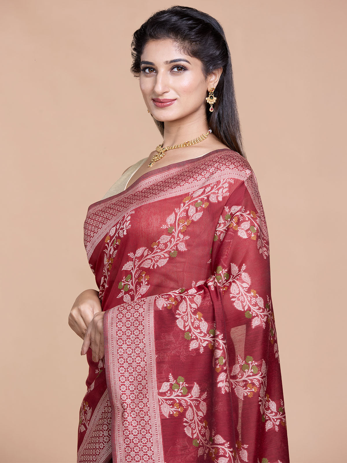 Maroon Resham Weave Mulmul Cotton Saree