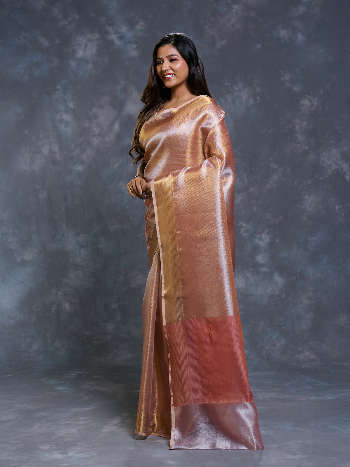 Peach Tissue Zari Woven Saree