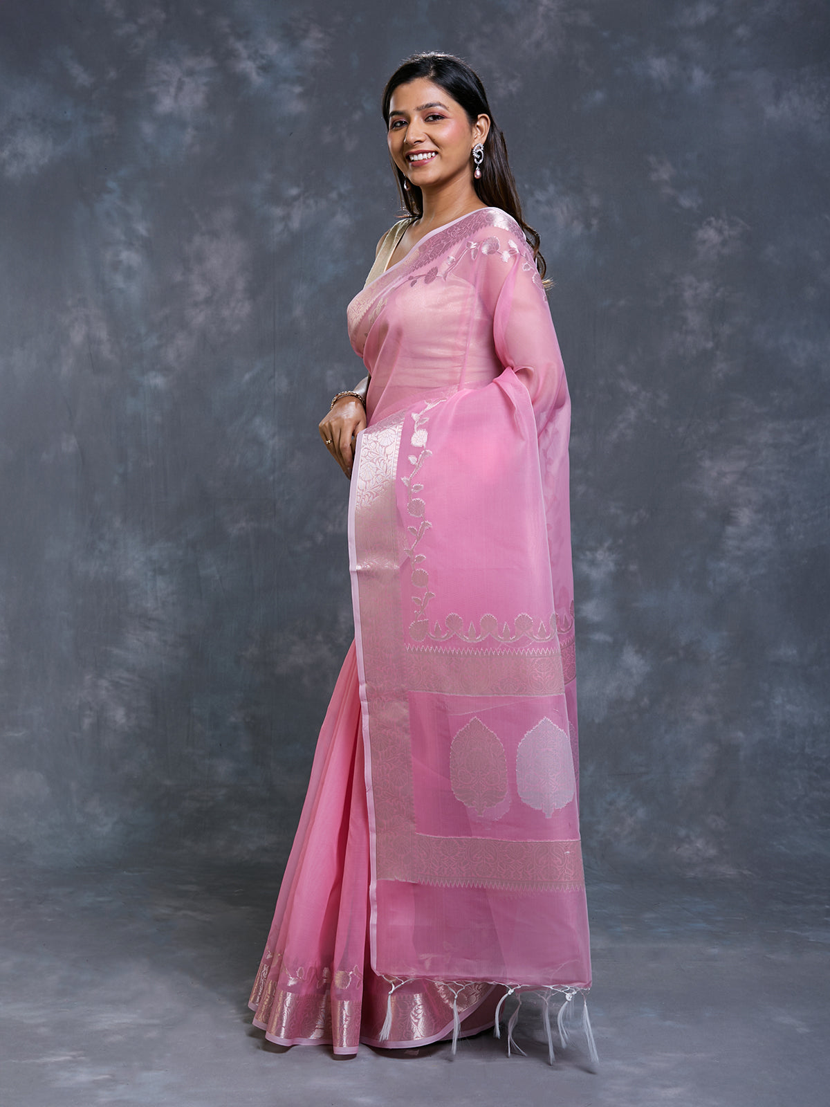 Pink Kora Organza Woven Saree