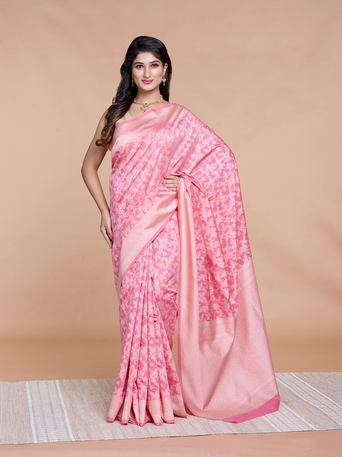 Pink Resham Weave Mulmul Cotton Saree