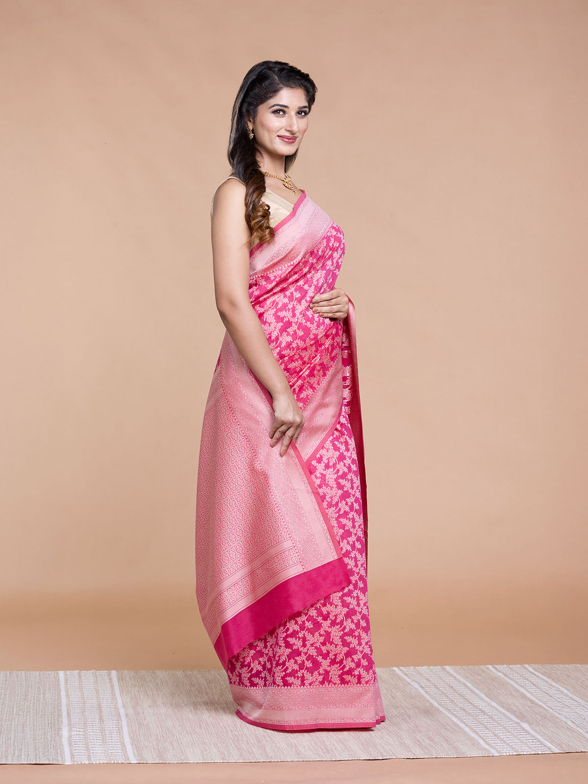 Rani Pink Resham Weave Mulmul Cotton Saree